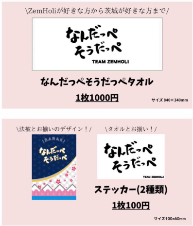 ZemHoliオリジナルグッズを販売しています。チームを応援していただける方、記念品をお求めの方はぜひお問い合わせください。